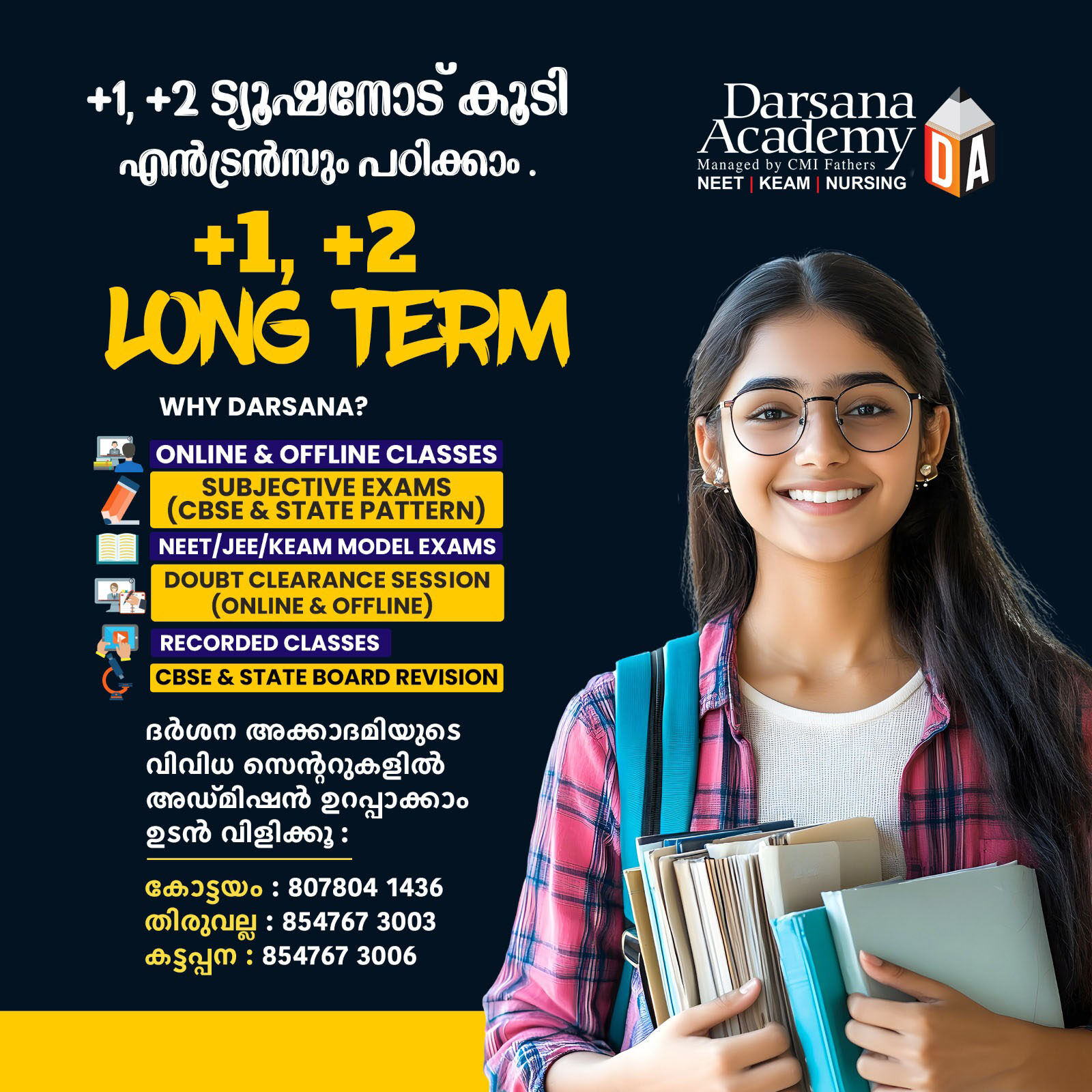 Darsana Academy is proud to announce the All Kerala Grand Model Exam for students preparing for medical and engineering entrance exams. This comprehensive exam covers a wide range of topics to ensure that students are well-prepared for the competitive entrance exams.